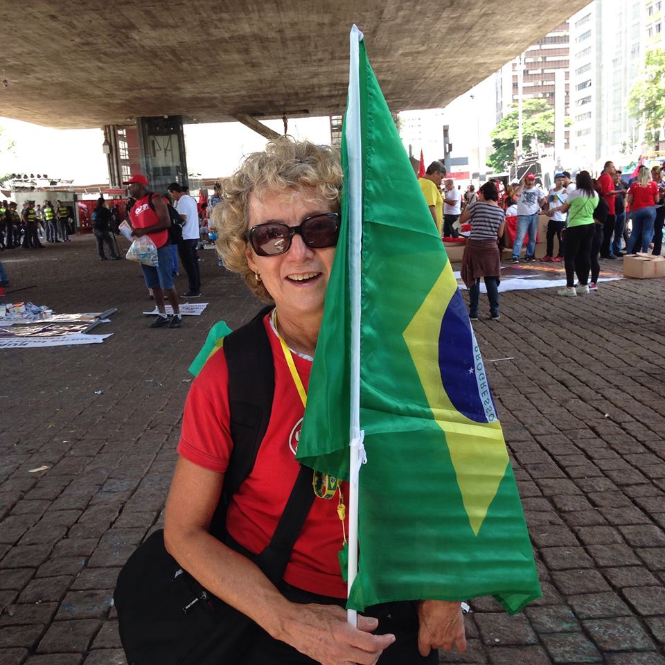 Maria de Lourdes, bancária aposentada, veio de Marília pro ato. “Vim com a bandeira do Brasil antes que os coxinhas tomem. Vejo muitas coisas parecidas com o golpe de 64, como alienação e movimentos de massa promovidos pela mídia. Não precisa ser petista, nem nada, mas as pessoas também não se indignam com o Alckmin sendo que a educação é horrível”