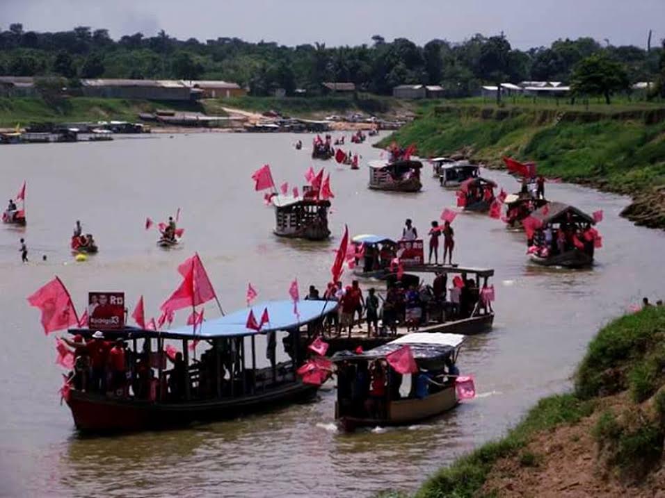Os defensores da democracia de Cametá (PA), vieram de barco para defender a democracia no ato em Belém.